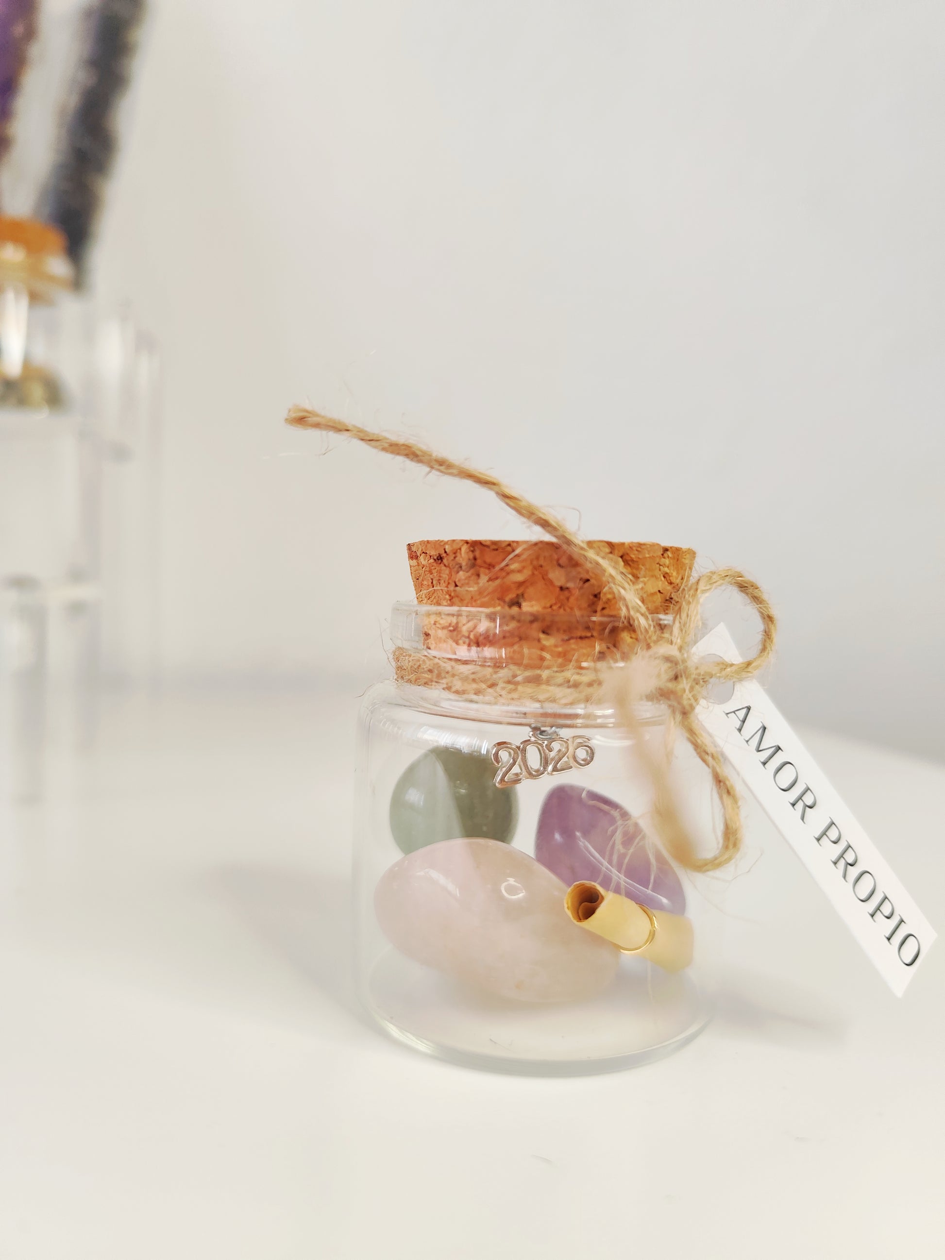 Tarro de Propósito para el Amor Propio ( Cuarzo rosa, Aventurina Verde, Amatista)